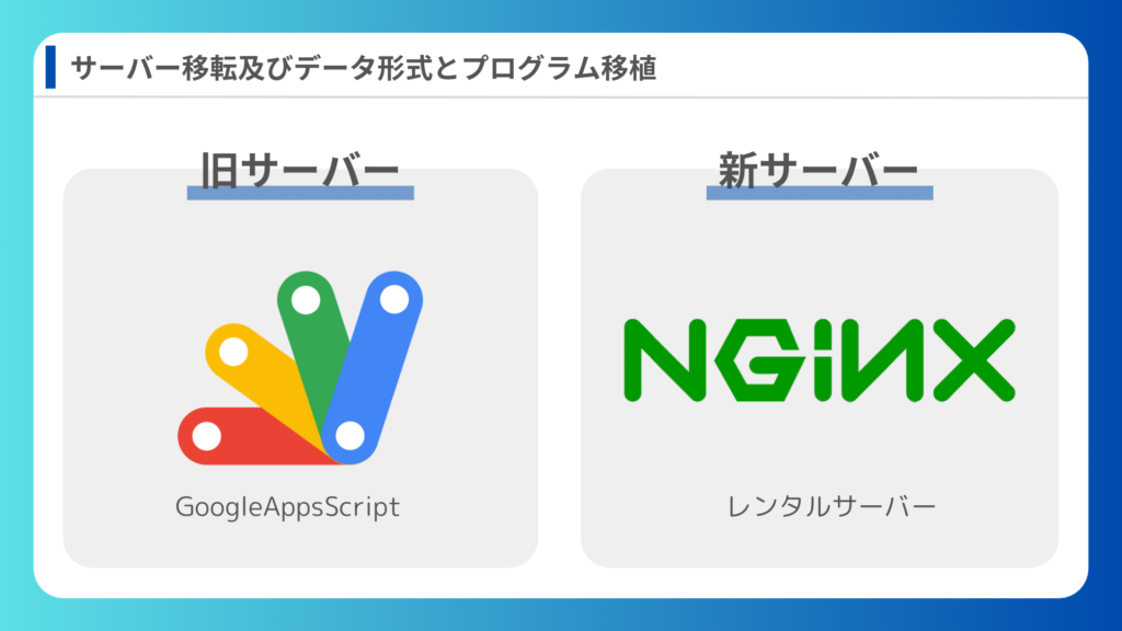 高速化のためそのうちのデータ管理システムのサーバーを移転及びプログラムの移植を行ったためです。
